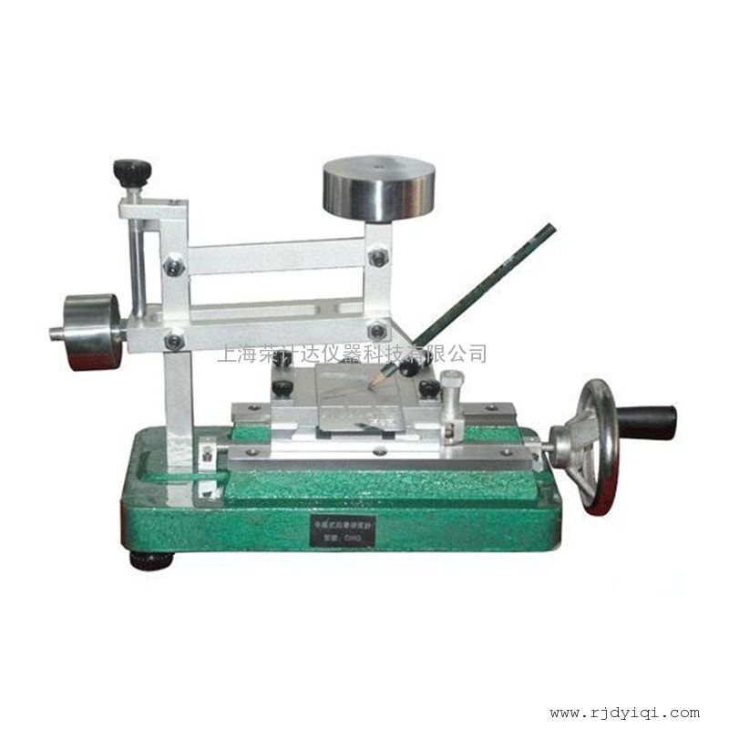 主要由铅笔架和试验台组成,铅笔架与立柱等组成四连杆结构,保证了砝码的重量垂直作用于铅笔芯与试验台的交点上,并使铅笔与试验台成45°夹角,并保持不变。试验台可横向、纵向移动,用它固定涂料样板,并使样板朝着划痕方向滑动,铅笔**在试片上划出相应轨迹来。换用不同铅笔划不同痕迹,据此可判定涂膜的硬度值。