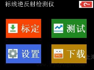软件主界面分为标定、测试、设置、下载 四个主项和电池电量显示标识。