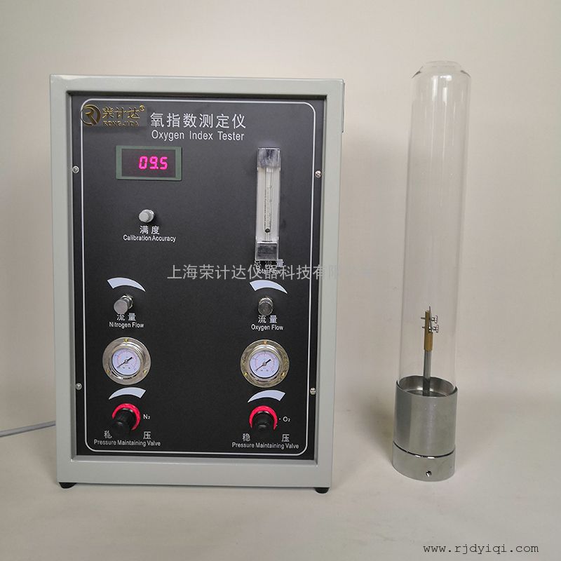 - 将试样垂直固定在燃烧简中,使氧、氮混合气流由下向上流过,点燃试样顶端,同时记时和观察试样燃烧长度,与所规定的判据相比较。在不同的氧浓度中试验一组试样,测定塑料刚好维持平稳燃烧时的*低氧浓度,用混合气中氧含量的体百分数表示。