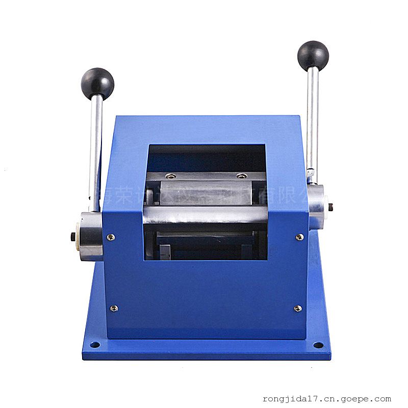5、转动左侧手柄,使四方形转动拆迭块退回原位:转动右侧手柄,使三角形弯曲压平块上升,取出试样板。