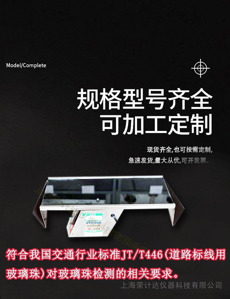 品牌:荣计达 型号:STT-960 加工定制:是 外形尺寸:380mm*150 mm 重量:约2 ㎏ 用途:是检测路面反光标线用玻璃珠成圆