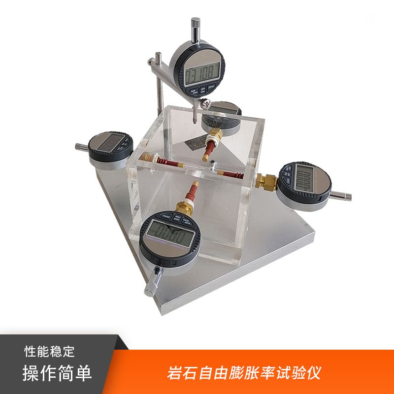 该仪器是岩石试件在浸水后产生的径向和轴向变形分别与试件直径和高度之比,以百分数表示。该试验仪器为千分表数字直读式结构,适用于各类岩石膨胀性试验中的侧向约束情况下,轴向位移变化的试验,配有透水板,千分表等试验装置。