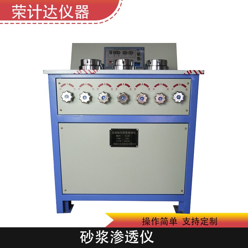 砂浆渗透仪是我公司依据行业标准JGJ70-90《建筑砂浆基本性能试验方法》而设计的仪器。用于测定防水砂浆的抗渗性能,进行掺有防水剂的砂浆与基准砂浆的对比试验。是根据液压原理进行设计,以电动机拖动水泵施压,通过管道与压力容器、控制阀、试模座等连接。压力由水泵输出进入压力容器。然后输送到各试件系统进行加载试验。管路中装有电接点压力表和电气控制系统,通过对电接点压力表内的电触点的调节,可以使压力在0.1-1.5MPa的规定范围内进行恒压试验。